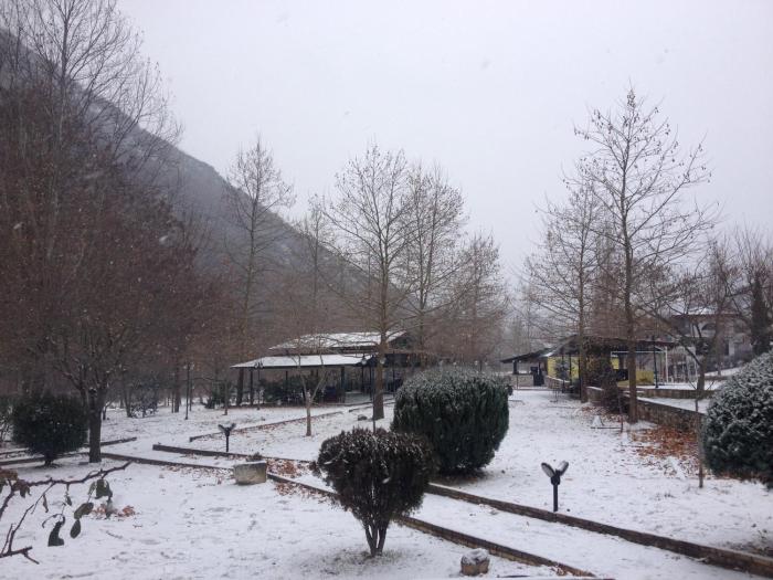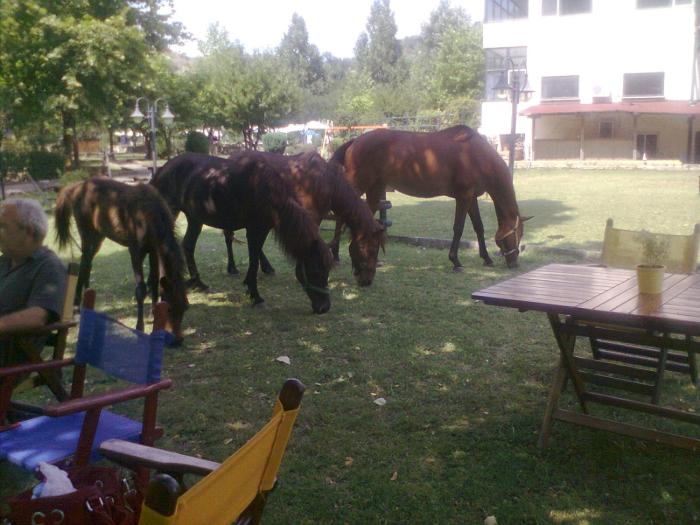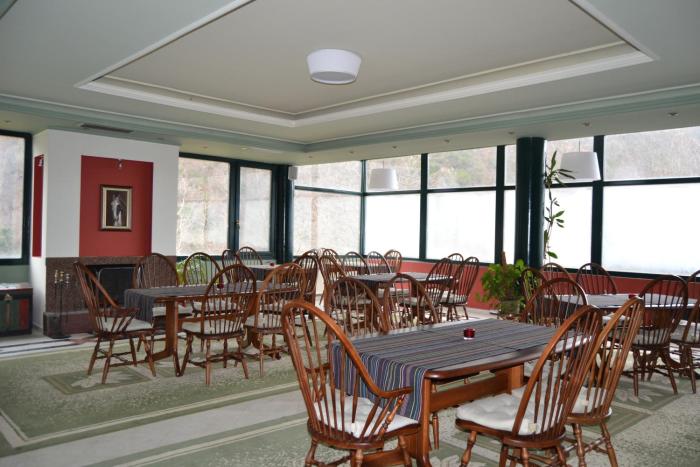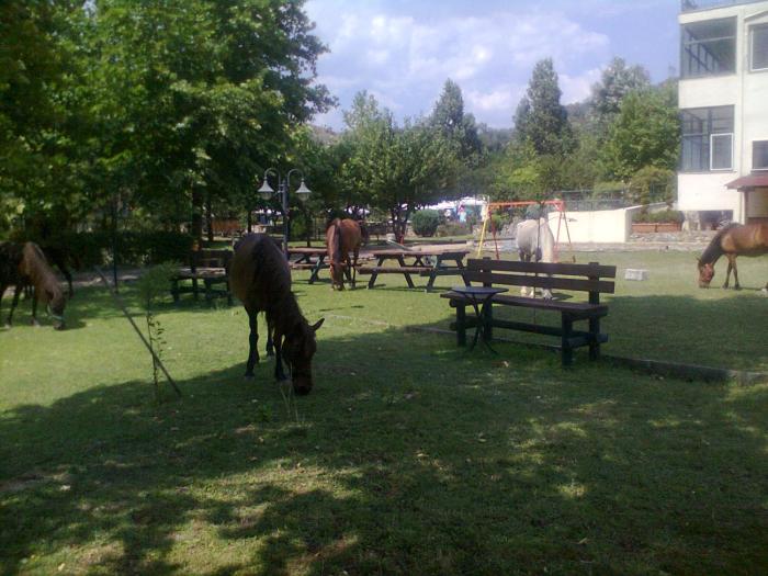 The hotel is 4 km out of town next to a running river with a view to the mountain. The rooms are a bit outdated but very clean. It's nice to wake up to the sound of the river and the birds' singing...