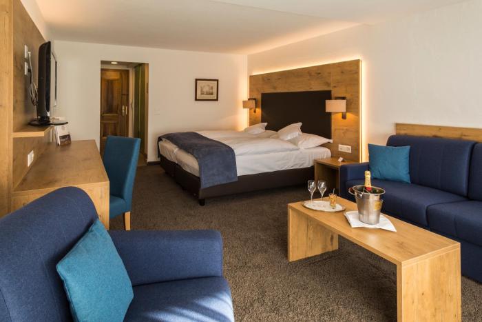 A refreshing swim in the indoor pool complex is a great way to unwind. Outdoor lounge chairs and umbrellas on the terrace invite guests to relax and unwind. The hot tub in the pool area promises pure relaxation. For guests who wish to keep active, tennis and golf are available. The hotel's location is particularly ideal for skiers. Sports and recreation facilities at the hotel include a gym, table tennis and badminton. Various wellness options are available at the hotel, including a spa, a sauna, a steam bath, massage treatments and a solarium. In the evenings, guests can unwind to live music.