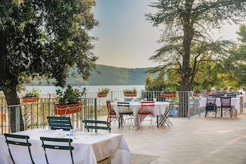The dining area includes a restaurant and a bar. Half board can be booked. Breakfast and a comprehensive dinner buffet are served every day.