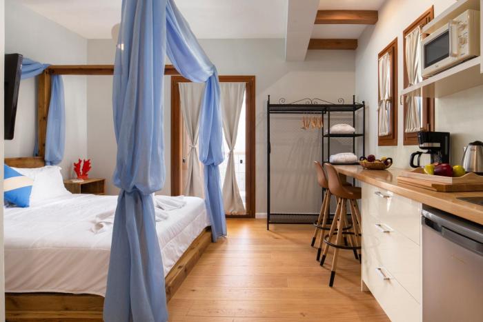 This hotel warmly welcomes guests in Ormos Korthiou.