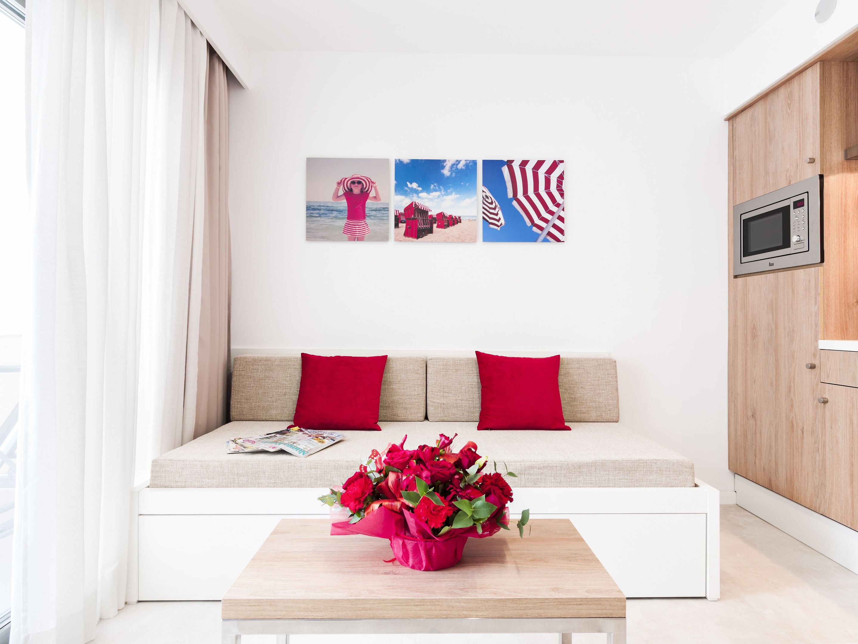 Air conditioning and central heating ensure that rooms maintain comfortable temperatures. A balcony is included as a standard feature in some rooms. Guests may securely store their valuables in a safe. For self-catering guests, there is a well-equipped kitchenette with a refrigerator, mini fridge, microwave and tea/coffee station. Internet access, a direct dial telephone and a television with satellite/cable channels provide all the essentials for a comfortable vacation. Bathrooms are equipped with a shower and a bathtub, as well as a hairdryer. Guests can also reserve wheelchair-friendly rooms with wheelchair-accessible bathrooms.