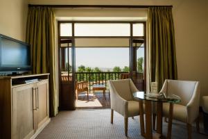 Air conditioning and individually adjustable heating ensure that rooms maintain comfortable temperatures. A balcony or terrace is among the standard features of some rooms. All rooms are carpeted and include a king-size bed. A safe, a minibar and a desk are also available. Guests will also find a tea/coffee station included among the standard features. A direct dial telephone, a television with satellite/cable channels, a DVD player and WiFi provide all the essentials for a comfortable vacation. Guests will also find slippers in their rooms. A hairdryer and bathrobes are provided in the bathrooms, which include a shower and a bathtub.