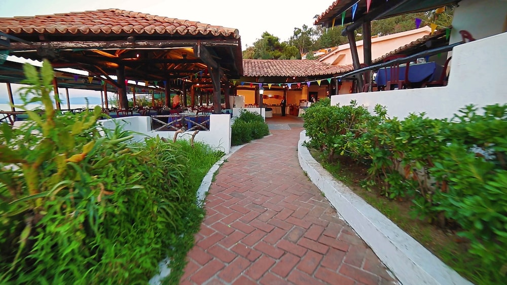 Bia Paraelios was very nice .It is a resort like a very posh Butlins but nicer . We stayed in a garden sea veiw room in the park area . with out side seating and table . Set on a hill looking down...