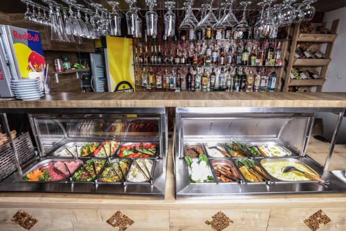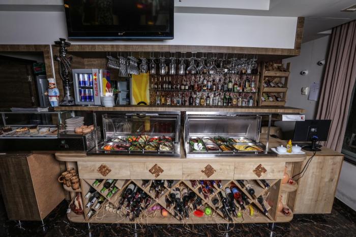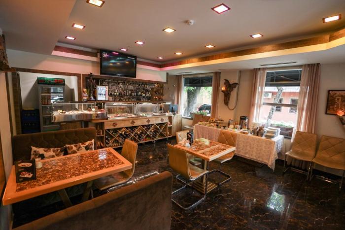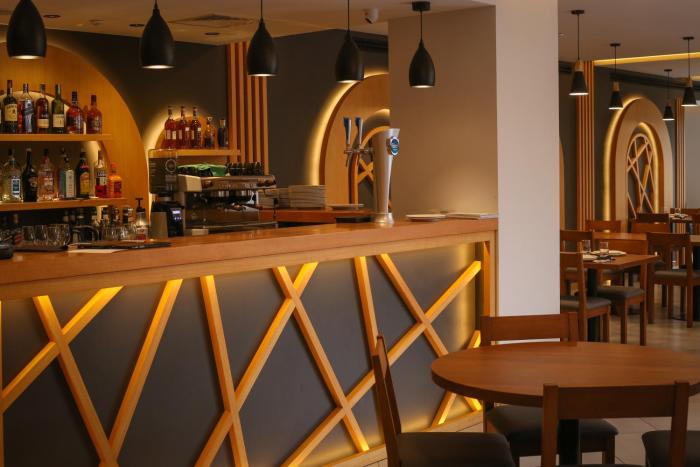 The hotel includes a restaurant and a bar.