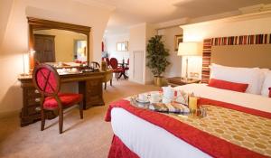 We stayed at the Bracken Court for 3 nights for our daughter's wedding. Our booking was for a luxury suite, and it was nicely decorated in shades of beige with deep red curtains, chairs and bed...