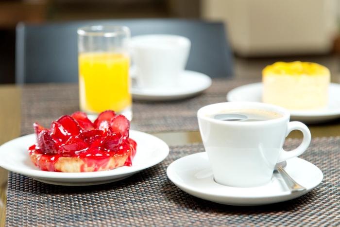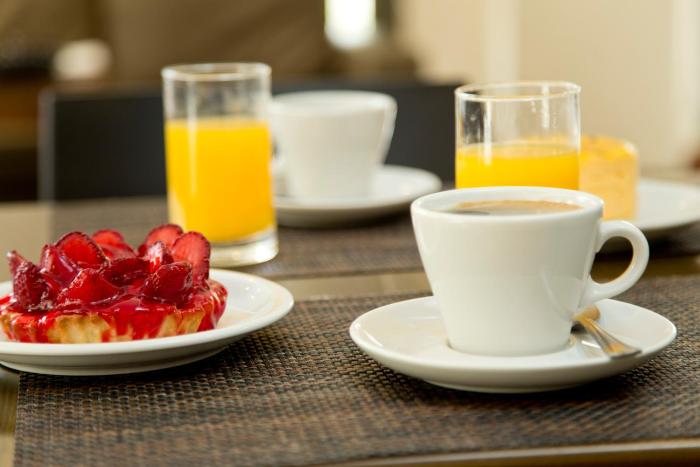 A complimentary buffet breakfast is served on weekdays from 7 AM to 9:30 AM and on weekends from 7 AM to 10 AM.
