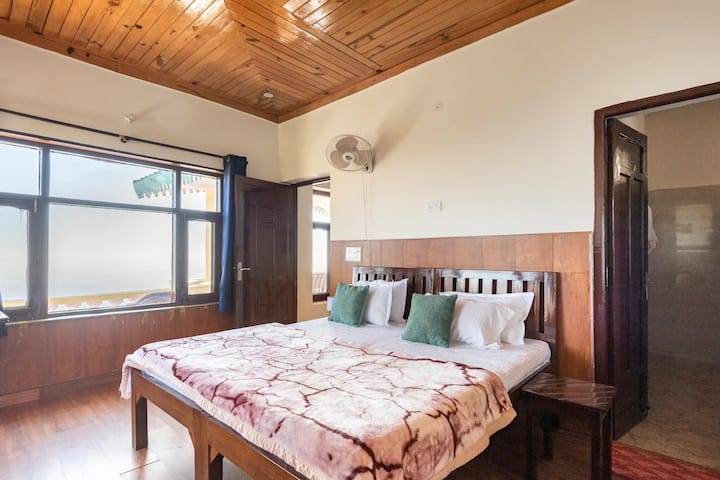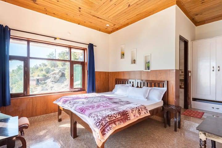 Relax in the cozy living room of Deodar Cottage and free your mind. Enjoy a nice book, savour a delicious meal, or just look out of the window at the mesmerising valley. "Deodar Cottage" located just 5kms from the Mussorie Mall road. Enjoy peace and privacy in the middle of this pine forest with only trees being your neighbours. This Cottage features common balcony with mesmerizing valley view. Breakfast will be complimentary. Deodar Cottage has 3 spacious bedrooms. 2 Bedrooms are located on the 1st floor of the cottage with 180 degree view of the mountains and Dehradun valley. Both the rooms have 1 king size beds. 1 family room is located in the ground floor of the property with 2 single beds and 5 seater couch. With wooden interior and a modern bathroom, the cottage has a double bed and an extra bed can be provided on request. We have a fully functional kitchen with a chef, serving delicious food. Guest may access the whole cottage along with the common garden area if entirely booked. There is high speed internet available, guests who plan a workstation are most welcome.