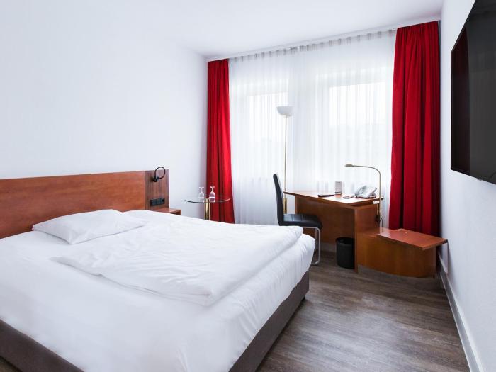 The hotel has 30 single rooms and 70 double rooms, which are located on 4 stories and are reachable by elevator. The friendly staff at the reception desk are happy to answer any questions. A baggage storage service, a safe and 4 conference rooms are available. Wireless internet access is provided in public areas (for a fee). Guests arriving by car can park their vehicles in the garage (for a fee) or in the parking lot.