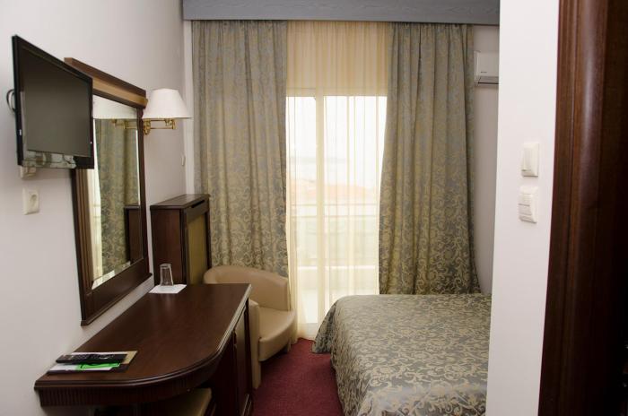 Rooms are equipped with air conditioning and central heating. Guests have a sea view from the balcony or terrace, which are standard features of some rooms. A safe and a minibar are also available. Guests will also find a mini fridge included among the standard features. A direct dial telephone, a television with satellite/cable channels and WiFi (for a fee) are provided as well. Bathrooms are equipped with a shower and a bathtub, as well as a hairdryer. The hotel has non-smoking rooms.
