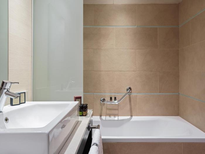 Guests can enjoy a refreshing swim in the outdoor pool area. Refreshing drinks at the pool bar and a relaxing soak in the hot tub offer the perfect way to unwind. A short break or an entire afternoon on the sun terrace, which features outdoor lounge chairs and umbrellas, is time well spent. Recreational activities and facilities at the hotel include a gym, a spa, a steam bath and massage treatments or, for a fee, golf.