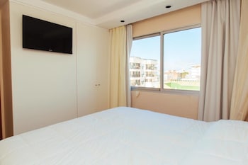 Rooms are equipped with air conditioning and individually adjustable heating. Guests can enjoy the view of the pool from a balcony or terrace. Rooms include a double bed. A safe and a minibar are also available. A kitchenette with a mini fridge, a microwave and a tea/coffee station is also provided as a standard feature. Equipped with a direct dial telephone, a television with satellite/cable channels and WiFi, the rooms provide many ways for guests to stay connected and entertained. Bathrooms are equipped with a shower and a hairdryer. Family rooms are available for parents with children.