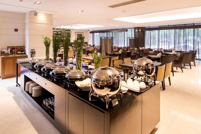 The dining area includes a restaurant and a bar.