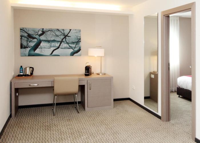 Air conditioning and central heating ensure that rooms maintain comfortable temperatures. Rooms have a double bed or a sofa bed. Children's beds and extra beds can be requested for younger guests. A safe, a minibar and a desk are also available. A refrigerator, a mini fridge and a tea/coffee station are standard features. A telephone, a TV, a radio, a plug adapter, an alarm clock and WiFi provide all the essentials for a comfortable vacation. A hairdryer and a vanity mirror are available in the bathrooms, which are equipped with a shower and a bathtub. As an extra convenience, bathrooms provide background music. Family rooms are available for parents with children.