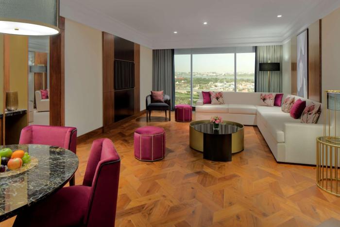 Thanks to its central location in Dubai, this 5-star business hotel is a perfect point of departure for discovering the area, ideal for for business travelers. The nearest shops are about 5 minutes by car away.
