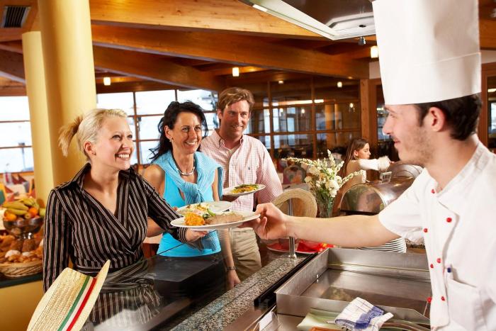 Dining facilities include a restaurant, a dining room, a breakfast room, a café, a bar and a pub. All-inclusive is offered as a catering option. Among the advantages of an all-inclusive stay are various offers, including a selection of alcoholic and non-alcoholic beverages. Breakfast, lunch and dinner are available. The menu also offers gluten-free meals and vegetarian dishes. The hotel also offers snacks. The show cooking is a particularly special attraction.