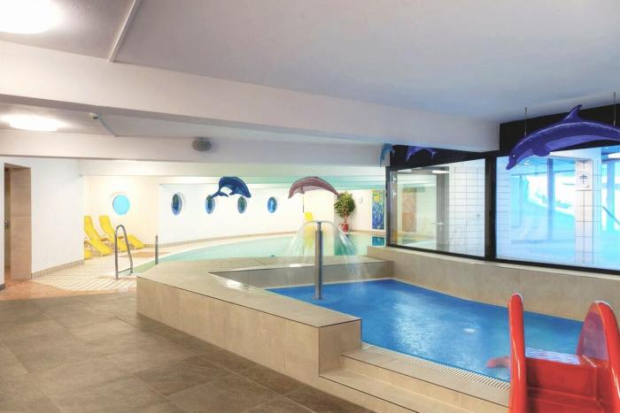 There are indoor and outdoor pools and a children's swimming area. Guests can relax and enjoy the outdoor lounge chairs and umbrellas provided. For guests who wish to keep active, volleyball, Nordic walking and horseback riding are available. The hotel's location is particularly ideal for skiers. A gym and badminton are options as well. There is a wellness area with a sauna, a steam bath, a beauty salon and massage treatments. Subject to charge: a solarium. Children can play in the kids' club and dance and sing at the kids' disco.