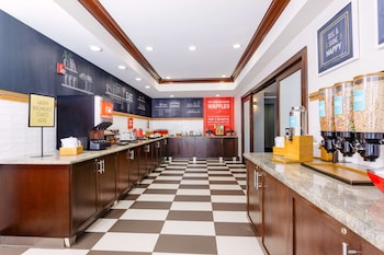 A complimentary hot/cold buffet breakfast is served daily from 6 AM to 10 AM.