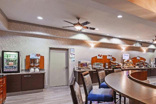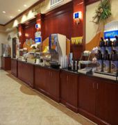 A complimentary hot/cold buffet breakfast is served daily from 6 AM to 9:30 AM.