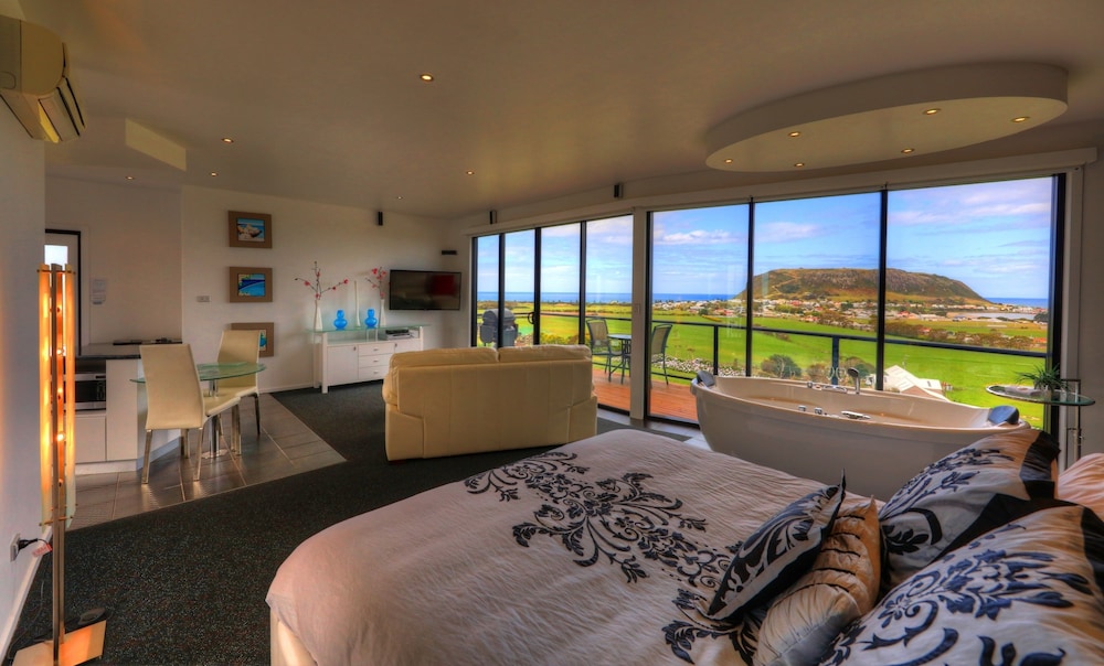 Absolutely beautiful. Perfectly provisioned. Wonderful apartments. The spa bath is huge with the most divine view. We are adoring our stay here! Has been wonderfully windy outside and delightfully...