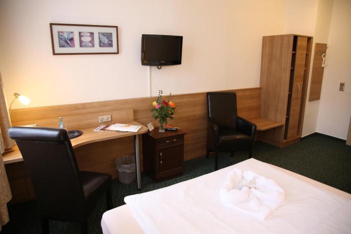 An excellent hotel, charming staff who speak english amongst other languages, comfortable beds in clean rooms..Just 100m off the main Connewitz road, but in a corner without noise or bustle. A...