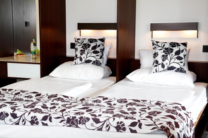 Central heating ensures that rooms maintain comfortable temperatures. Some rooms have a balcony, which gives guests additional space for rest and relaxation. All rooms are carpeted and include a double bed. Children's beds and extra beds can be requested for younger guests. Amenities in some rooms include a safe, a minibar and a desk. A direct dial telephone, a television with satellite/cable channels, a radio and WiFi (for a fee) provide all the essentials for a comfortable vacation. Guests will also find slippers in their rooms. A hairdryer and bathrobes are provided in the bathrooms, which include a shower and a bathtub.