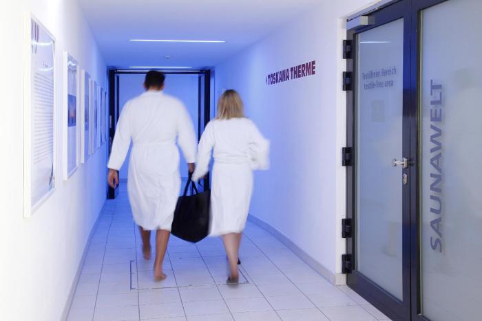 Nice hotel, connected with the Toskana Therm. Very quite and modern, with a good restaurant and a rich breakfast. If I have to find a small defect, few international TV channels were available (no...