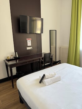 An old style hotel. No lift. The rooms are rather big as for French standards. Comfortable. Centric. Clean. A possibility of having a breakfast (expensive). We liked it in the whole. No parking place...