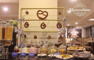 If you don't mind to stay in a hotel room with an old TV, with a very small bathroom, it's OK. Himmelblau it's an old fashioned hotel, but clean and with a good location. There is a Shopping few...