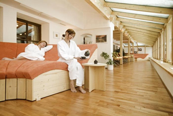 There are indoor and outdoor pools as well as a children's swimming area. A short break or an entire afternoon on the sun terrace, which features outdoor lounge chairs and umbrellas, is time well spent. The hot tub in the pool area promises pure relaxation. The wide range of activities offered at the hotel ensures that there is something new to do every day, including cycling/mountain biking, tennis, volleyball, miniature golf, golf, archery, Nordic walking, fishing and horseback riding. The water sports offered include aquafit. Sports and recreation facilities at the hotel include a gym, table tennis and billiards. Various wellness options are available at the hotel, including a spa, a sauna, a steam bath, a beauty salon, massage treatments and a solarium. Children are well looked after in the kids' club (no extra charge).