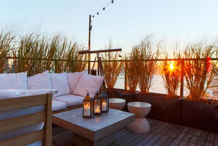 Fine weather can be enjoyed on the terrace. After an eventful day, guests can work out and recharge in the gym.