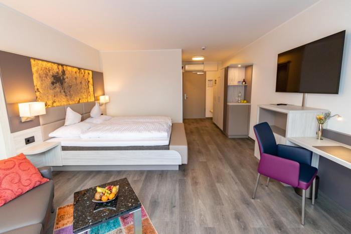 Some rooms have a balcony, which gives guests additional space for rest and relaxation. Rooms include a double bed. Children's beds can be requested for younger guests. A safe, a minibar and a desk are also available. Extra comforts include a refrigerator. An ironing set is provided for guests' convenience. A direct dial telephone and WiFi are provided as well. A hairdryer is provided in the bathrooms. The accommodation has non-smoking rooms.