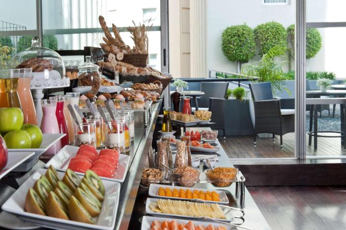 The hotel includes a restaurant and a bar. A generous breakfast buffet, lunch and dinner offer plenty of delicious variety.