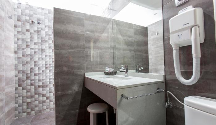 Air conditioning and individually adjustable heating ensure that rooms maintain comfortable temperatures. A balcony is included as a standard feature in some rooms. The rooms have a double bed and a sofa bed. Other features include a direct dial telephone, a television with satellite/cable channels and WiFi. Bathrooms are equipped with a bathtub and a hairdryer. The hotel has non-smoking rooms.