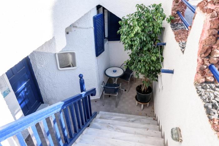 This hotel is located in Perissa. The nearest airport is Thira (JTR).