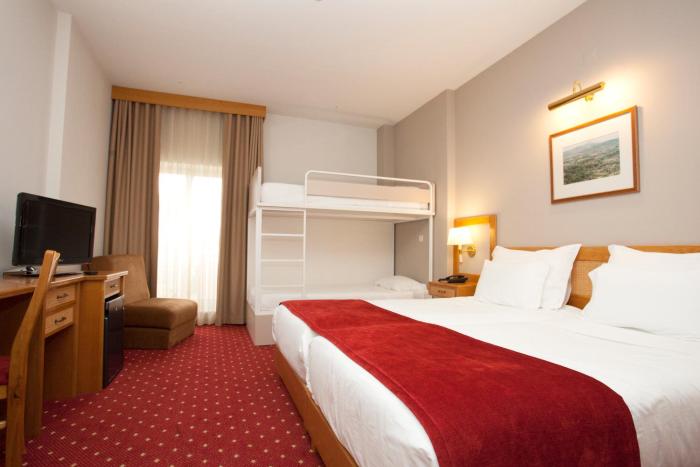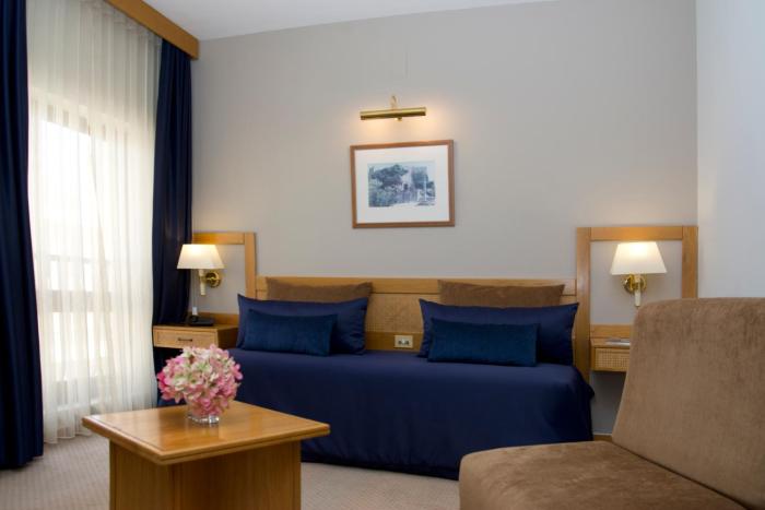Air conditioning and central heating ensure that rooms maintain comfortable temperatures. A balcony is among the standard amenities of some rooms. Extra beds can be requested. A safe, a minibar and a desk are also available. Additional features include a refrigerator, a mini fridge and a tea/coffee station. An ironing set is provided for guests' convenience. A direct dial telephone, a television with satellite/cable channels, a radio, a plug adapter, an alarm clock and WiFi are provided as well. A hairdryer and a vanity mirror are available in the bathrooms, which are equipped with a shower and a bathtub. For extra comfort in the bathrooms, guests are offered cosmetic products. Family rooms are available for parents with children.
