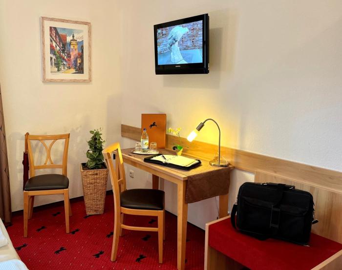 Stayed 2 nights while visiting the beautiful town of Rothenburg. Our room was a little on the small side but just fine for the amount of time we spent in the room, which other than sleeping, wasn't...