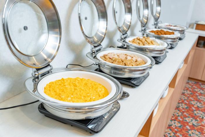 A generous breakfast buffet guarantees a great start to the day.