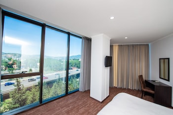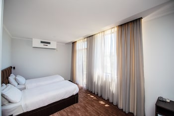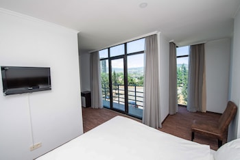 Nice service and professional staff and delicious break fast and nice views and clean room and frindly reception and helping staff also price cheap and location in sarajshvelli near to metro station...
