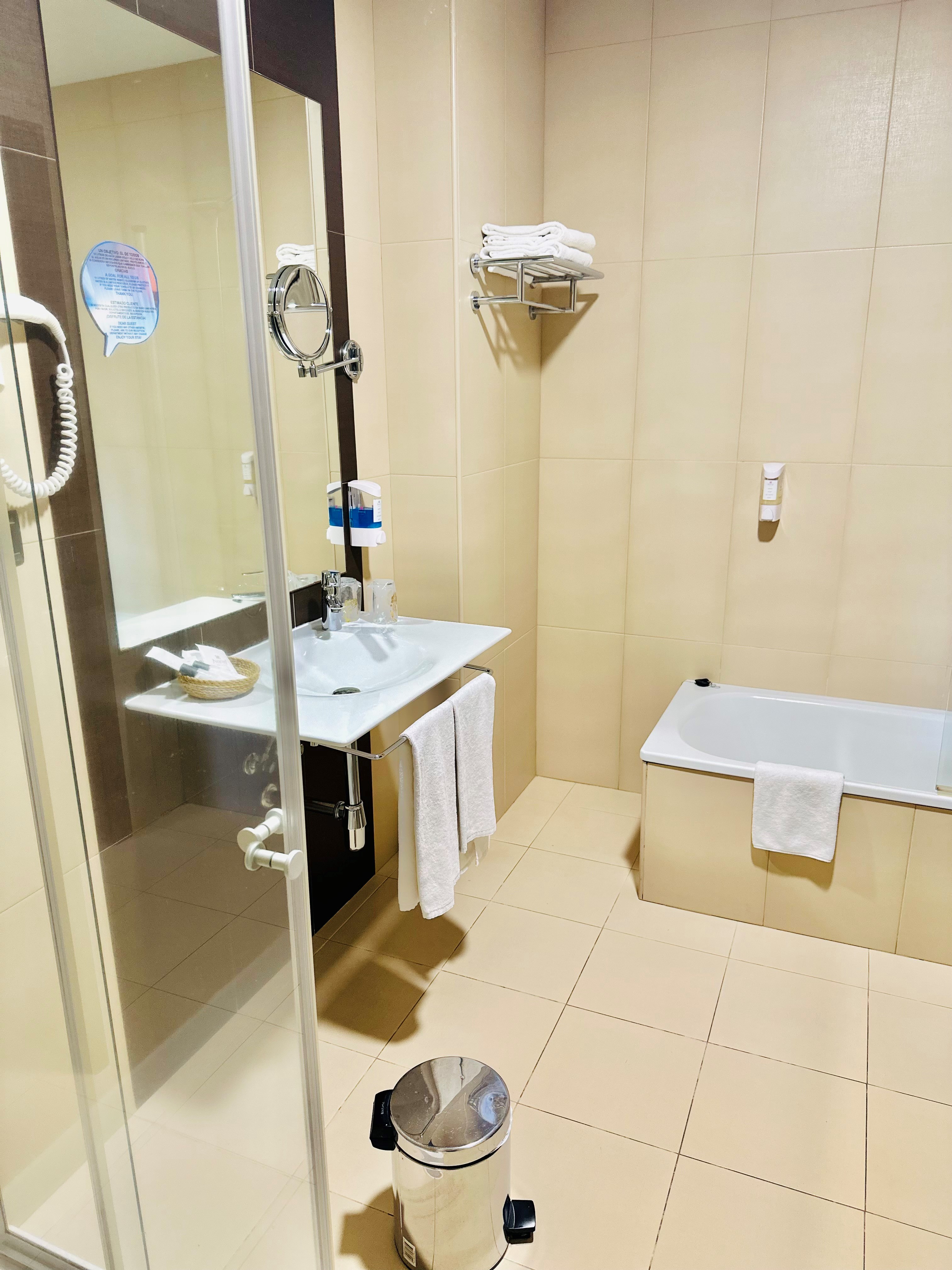 Air conditioning and central heating ensure that rooms maintain comfortable temperatures. Rooms include a double bed. A safe, a minibar and a desk are also available. Equipped with internet access, a direct dial telephone and a TV, the rooms provide many ways for guests to stay connected and entertained. A hairdryer and a vanity mirror are provided in the bathrooms, which include a shower and a bathtub. Guests can also reserve wheelchair-friendly rooms with wheelchair-accessible bathrooms. The hotel has 50 non-smoking rooms.