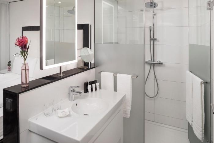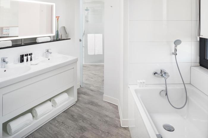 Air conditioning and central heating ensure that rooms maintain comfortable temperatures. Rooms have a double bed or a king-size bed. A safe, a minibar and a desk are also available. Equipped with a telephone, a TV, a radio and WiFi, the rooms provide many ways for guests to stay connected and entertained. The daily newspaper is laid out for guests in the the rooms. A hairdryer and a vanity mirror are available in the bathrooms, which are equipped with a shower. The hotel has non-smoking rooms.