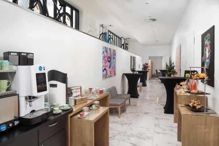The friendly staff at the reception desk are happy to answer any questions. Guests receive a welcome drink upon arrival. Services and facilities include a safe, room service, a laundry service and a conference room. Wireless internet access in public areas allows guests to stay connected. Guests arriving by car can park their vehicles in the garage (for a fee) or in the parking lot.