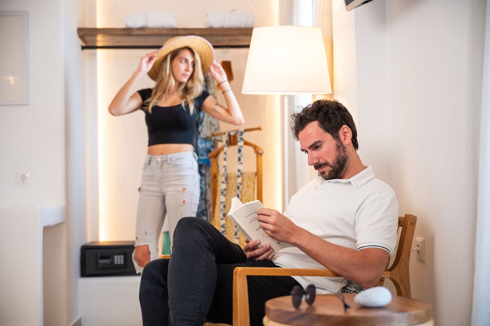 This hotel warmly welcomes guests in Astypalaia.