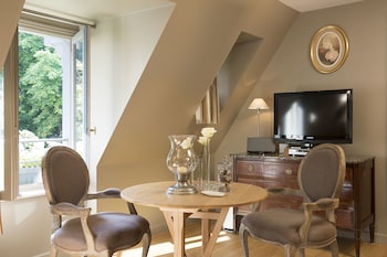 The hotel is within walking distance of Honfleur, itself a charming city. The hotel is up on a hill in a peaceful, beautiful setting. Very charming buildings with great food and wonderful staff...