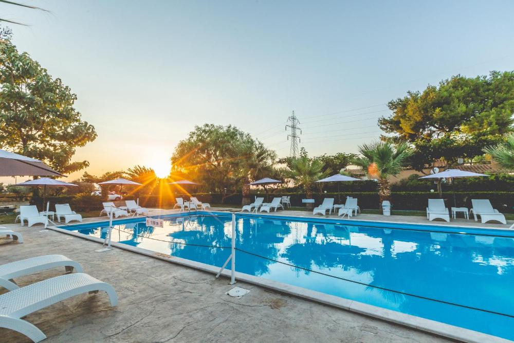 Guests can enjoy a refreshing swim in the outdoor pool area. A variety of refreshing drinks await guests at the pool bar.