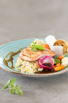 The dining area includes a restaurant and a café. A delicious breakfast provides energy for the rest of the day.