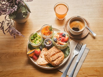 The dining area includes a restaurant and a café. A delicious breakfast provides energy for the rest of the day.