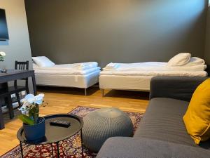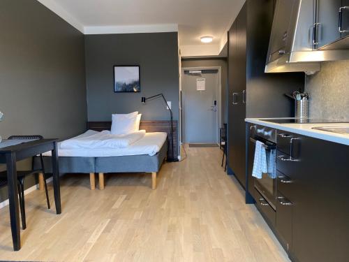 This apartment hotel warmly welcomes guests in Stockholm.