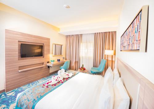 Make yourself at home in one of the 90 air-conditioned rooms featuring refrigerators and flat-screen televisions. Complimentary wireless Internet access keeps you connected, and satellite programming is available for your entertainment. Private bathrooms with bathtubs or showers feature designer toiletries and hair dryers. Conveniences include phones, as well as safes and electric kettles.