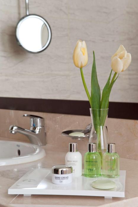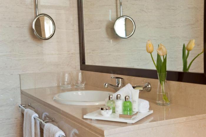 Air conditioning and individually adjustable heating ensure that rooms maintain comfortable temperatures. Rooms have a double bed or a king-size bed. A safe and a minibar are also available. Additional features include a mini fridge and a tea/coffee station. Equipped with a direct dial telephone, a television with satellite/cable channels and WiFi (no extra charge), the rooms provide many ways for guests to stay connected and entertained. Bathrooms are equipped with a shower and a bathtub, as well as a hairdryer. Guests can also reserve wheelchair-friendly rooms with wheelchair-accessible bathrooms. Family rooms are available for parents with children.