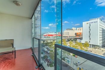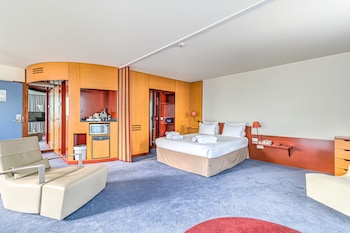 Great location as there is a tram stop right outside the hotel. Located 10-15 minutes away from the city centre. The room was very spacious and there was a nice view of the river from the balcony...